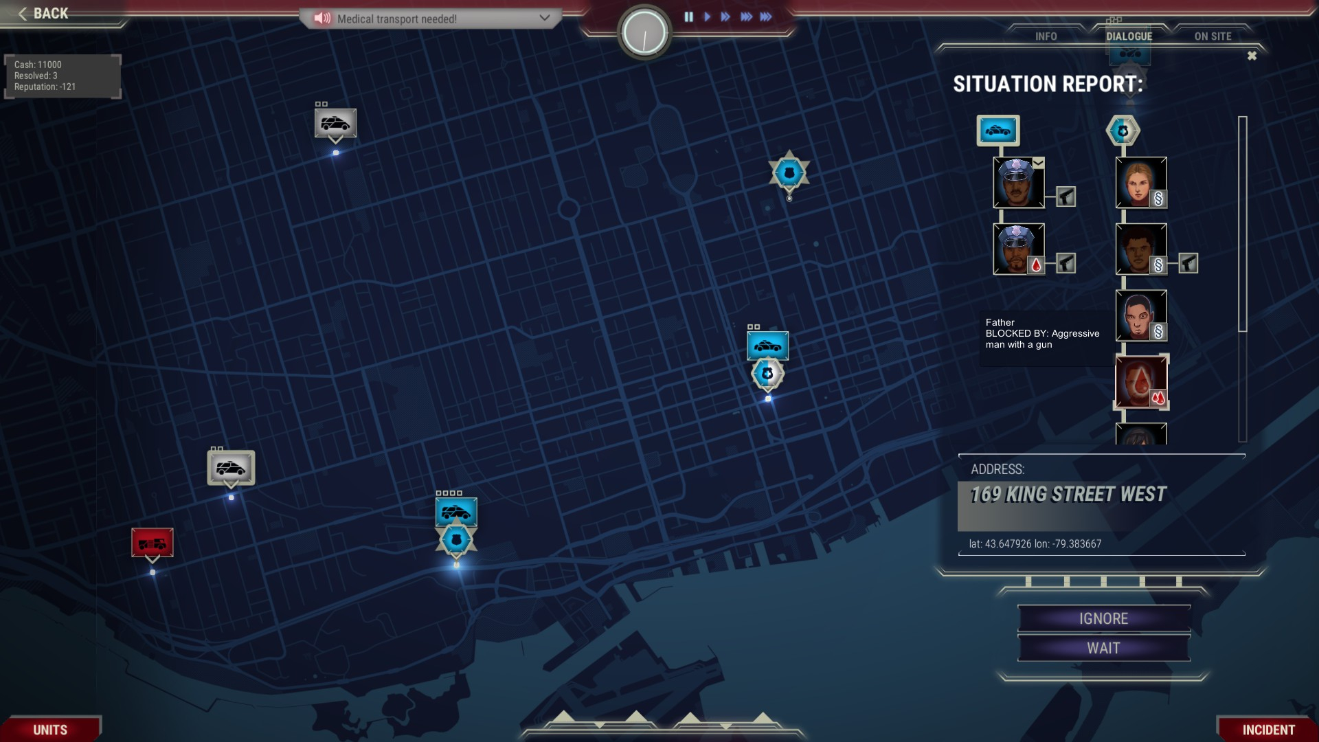 Отряды полиции, пожарных и медиков находятся в полном вашем распоряжении. Каждый отряд может использовать одно из множества транспортных средств (от стандартных автомобилей до вертолётов), снаряжение (бронежилеты, аптечки, ящики с инструментами), а также состоять из членов команды с различными навыками.