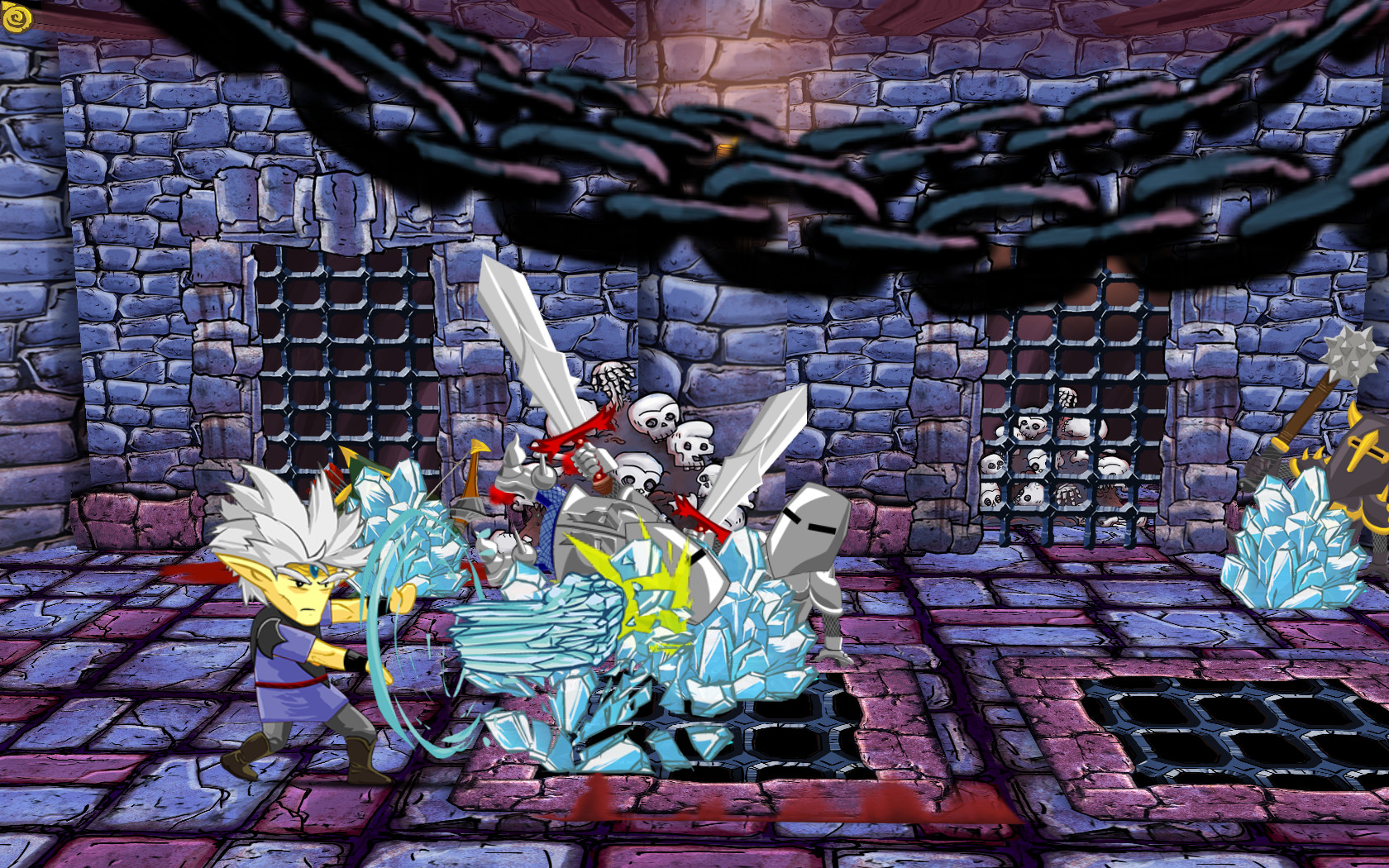 Оба воина попадают в пещеру из двух разных мест и быстро продвигаются к магическому камню, достигая его одновременно. Камень телепортирует их в пещеру назначения, но результат не такой, как ожидалось: магическое путешествие не было подготовлено для двух существ одновременно, и теперь человек и муха, орк и эльфийка слиты воедино.
