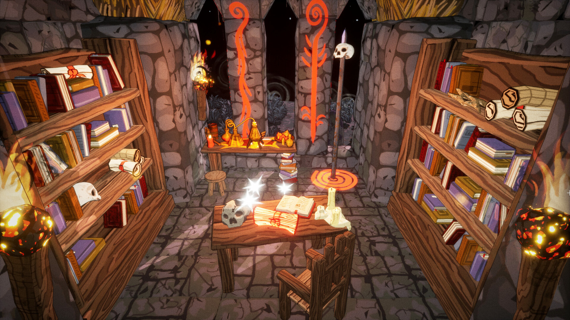 Вы алхимик, а значит, обходитесь без меча и доспехов, обрушивая на врагов ураганы огня. Находите колбы с уникальными смесями или сами создавайте их на своем верстаке. Подобно собиранию колоды в коллекционных карточных играх, вы собираете коллекцию колб, из которой случайным образом метаете колбы во врагов в бою.