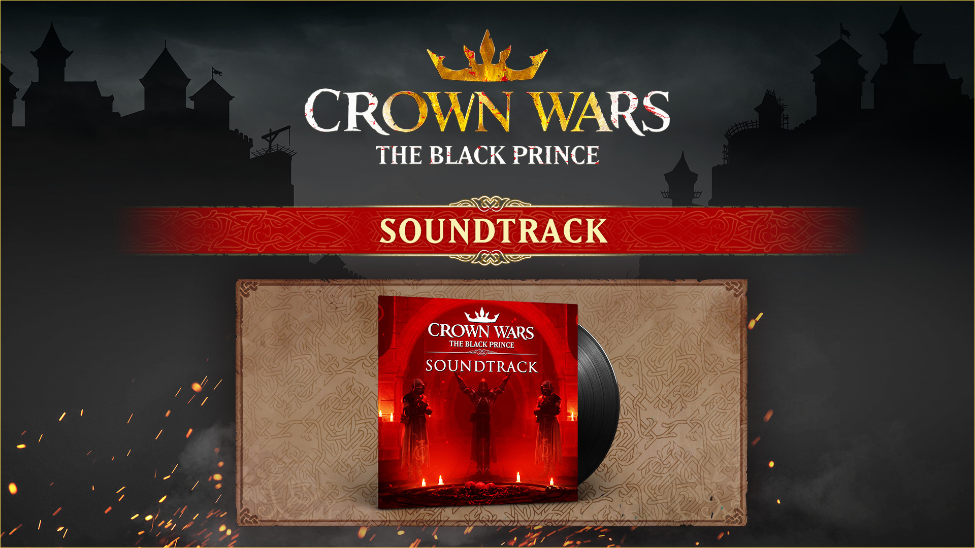 Слушайте оригинальную музыку из игры где угодно и вспоминайте свои битвы в Crown Wars: The Black Prince под 9 эпичных треков в средневековом стиле.