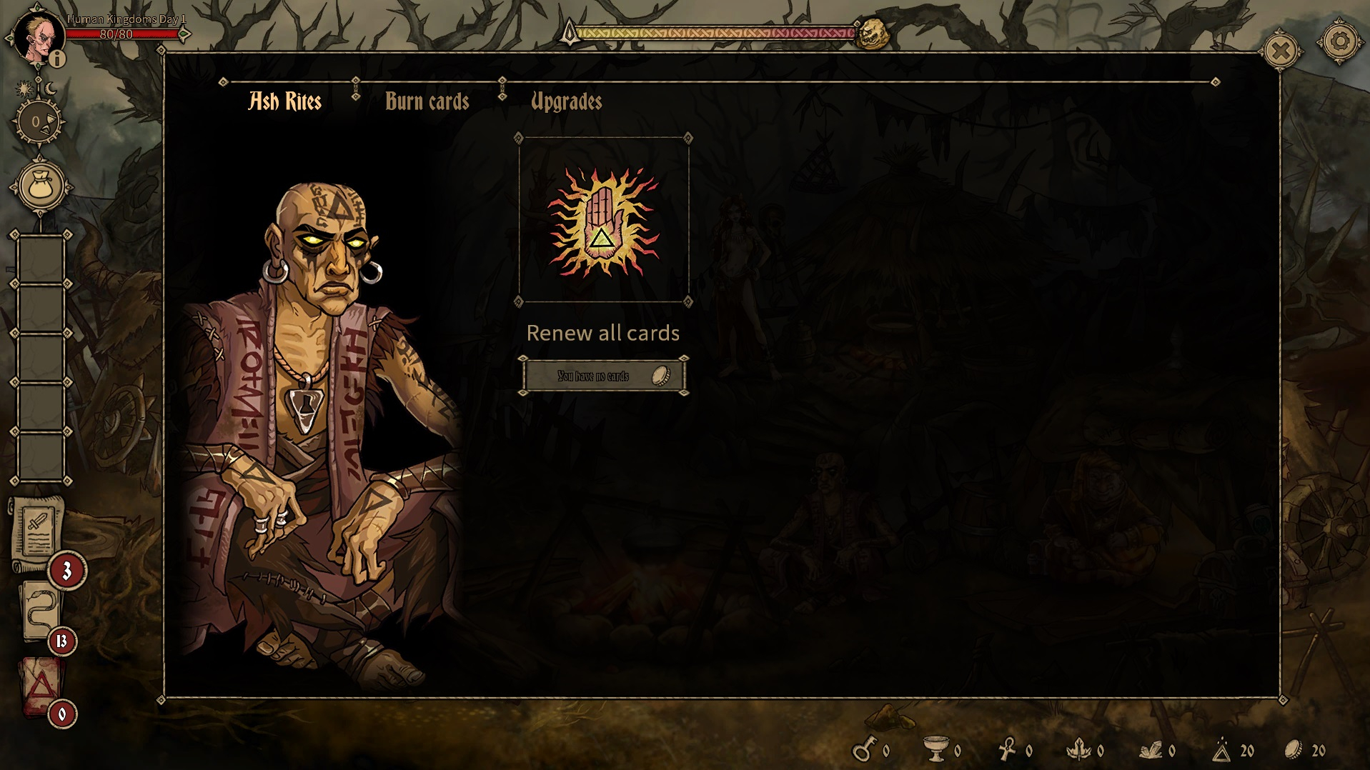 Deck of Ashes — это приключенческая игра с тактическими карточными боями. Одного за другим, ведите банду антигероев по пути искупления. Исследуйте мрачный фантастический мир и собирайте карты в уникальную боевую колоду. Проверьте свое умение выживать и управлять ресурсами, улучшая лагерь союзников.
