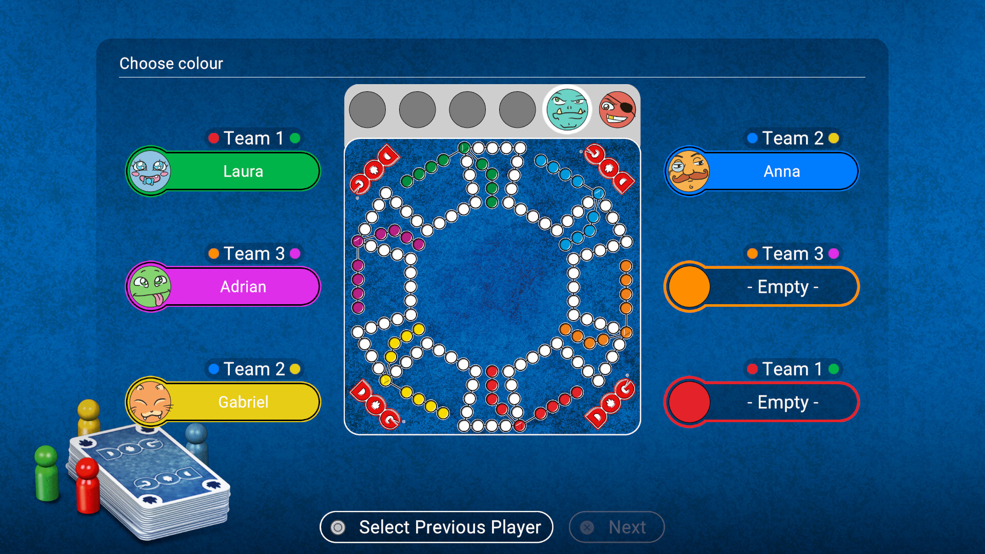 На вид это Ludo, но на самом деле это DOG®. В этой игре тоже нужно доставить фишки в «домик». Разница в том, что двигать их нужно с помощью карт, и тут вас ждут внезапные сюрпризы! Командный дух очень важен: выиграть можно только вместе.
