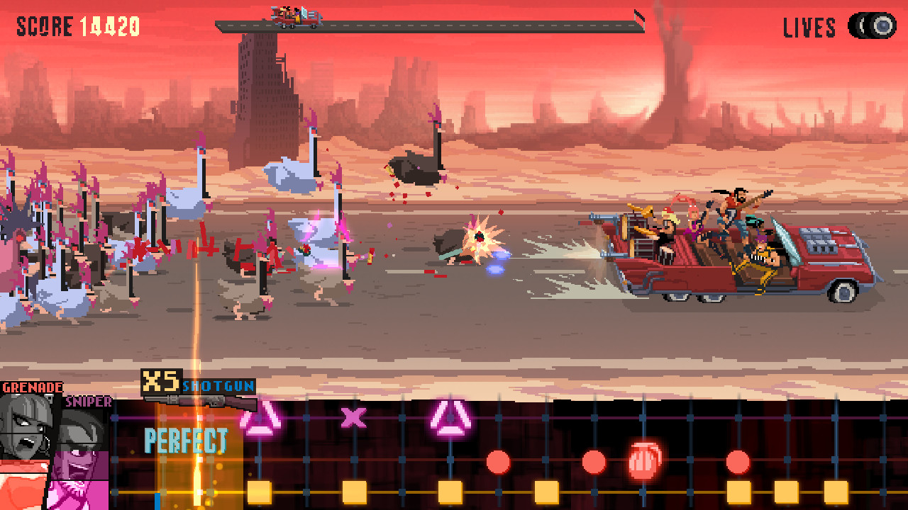Или... можешь подобрать свою дерьмовую рэп-музыку и играть под её монотонные ритмы. Решать тебе! А лучше, вруби парочку треков от Tenacious D и прочувствуй всю мощь МЕТАЛЛА! Ты можешь загрузить любой трек на любой уровень! Не забудь поделиться своими результатами с друзьями ,стань первым в списке лидеров!