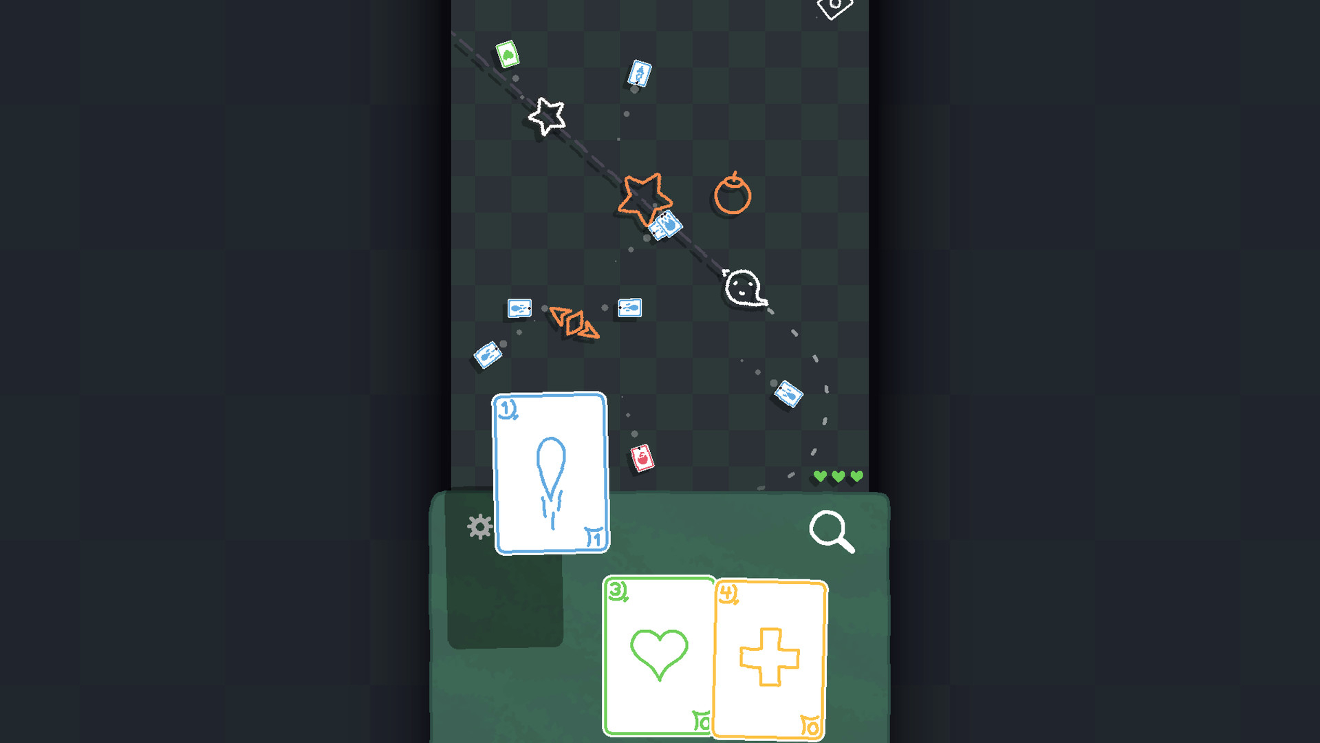 На протяжении 5 этапов вам придется проявлять ловкость и изворотливость, чтобы уворачиваться от пуль-карт, и навыки стратегического мышления, чтобы грамотно использовать карты. Каждая подобранная карта расходует одно очко здоровья, так что не хватайте по пути все подряд.