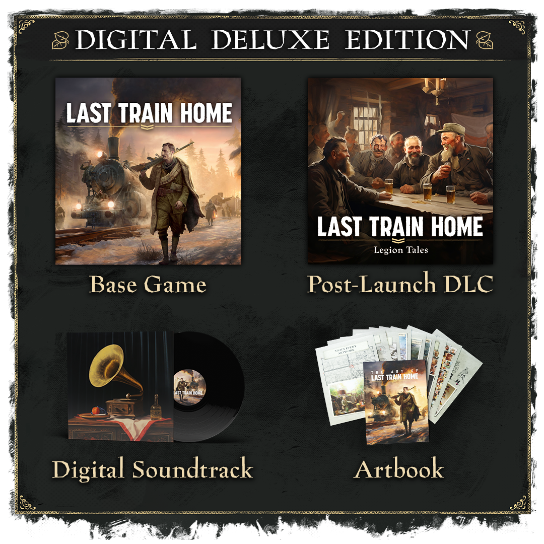 Откройте для себя полную историю легионеров, приобретя издание «Last Train Home Digital Deluxe Edition»: в нем вас ждут большое дополнение «Last Train Home - Legion Tales», цифровой артбук и саундтрек игры.