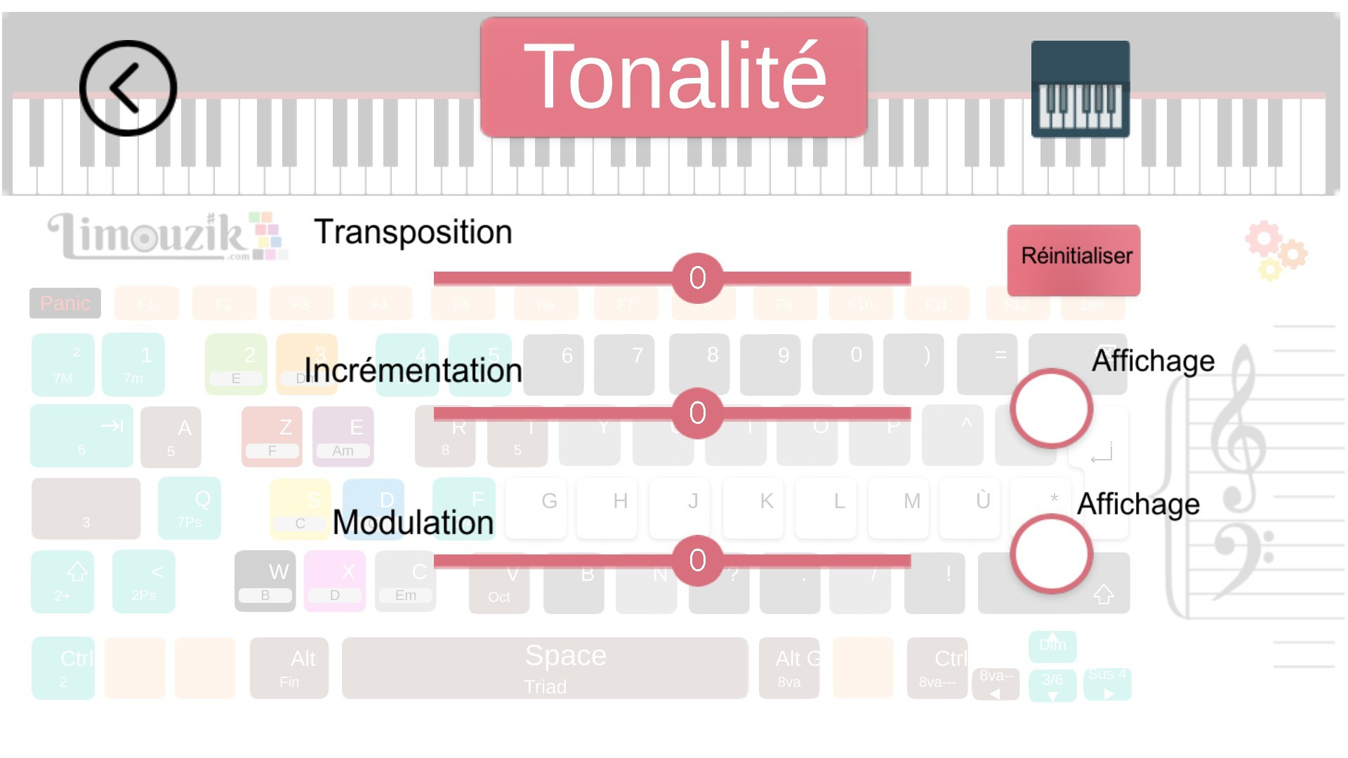 Limouzik основан на классической гармонии и взаимосвязи между аккордами одной тональности (используется в знаменитых песнях 4 аккорда). В зависимости от выбранного аккорда алгоритм постоянно пересчитывает высоту нот других тональностей, чтобы всегда играть правильно.