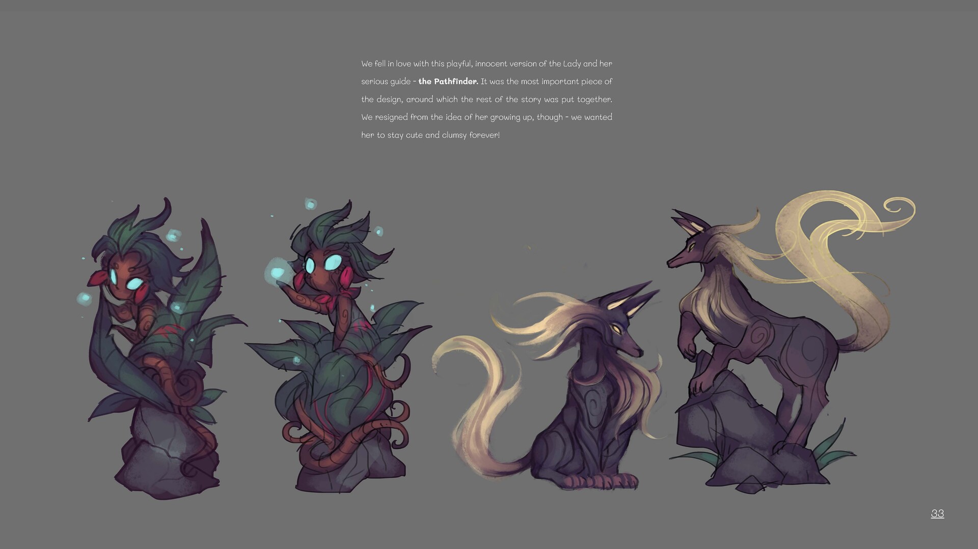 Артбук включает в себя более 40 страниц с подробным описанием процесса создания мира Oaken, его духов и биомов, а также комментарии создателя.