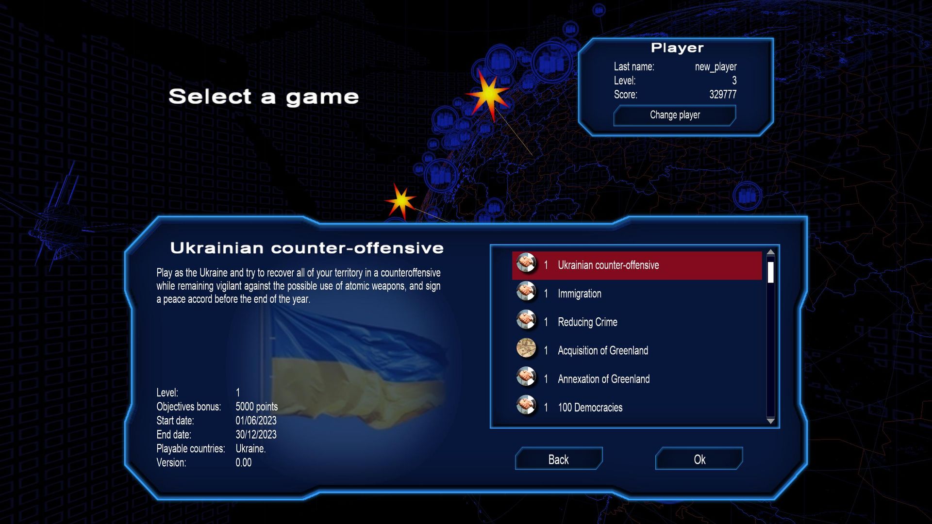 Сценарий «Контрнаступление» позволяет играть за одну из сторон в момент начала наступления с актуальными данными о линиях фронта, численности войска, подробной информации о вооружении и т.д. Ваша цель заключается в том, чтобы вернуть как можно большую часть своей территории, чтобы иметь возможность вести переговоры о мирных соглашениях с позиции силы, при этом помня о возможности ядерного оружия.