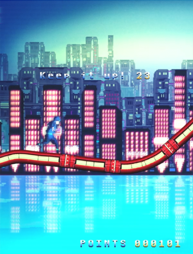 В этом аркадном бесконечном раннере, оптимизированном под сетевую игру, с вами ничего не случится, пока вы помните принцип: вы не управляете героем... вы управляете трассой.