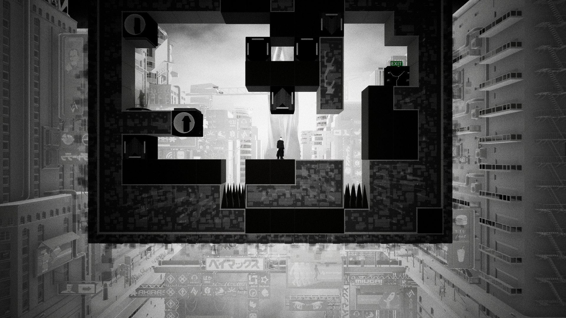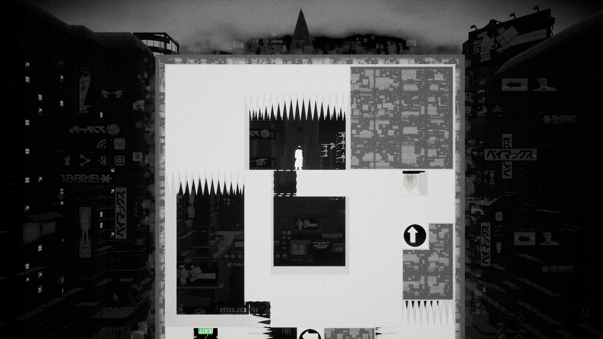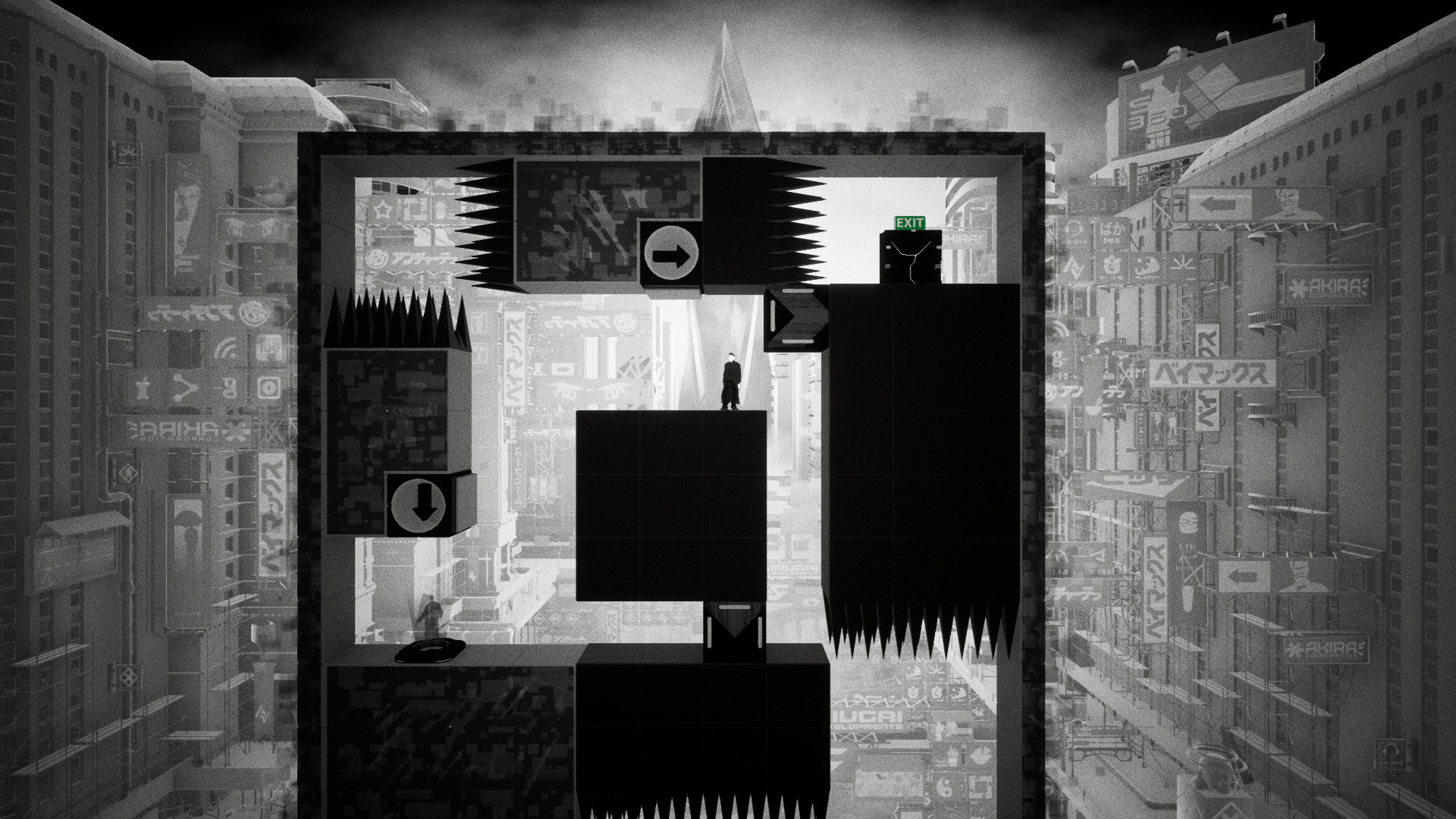 - Стильный черно-белый игровой мир в церебральной киберреальности.
