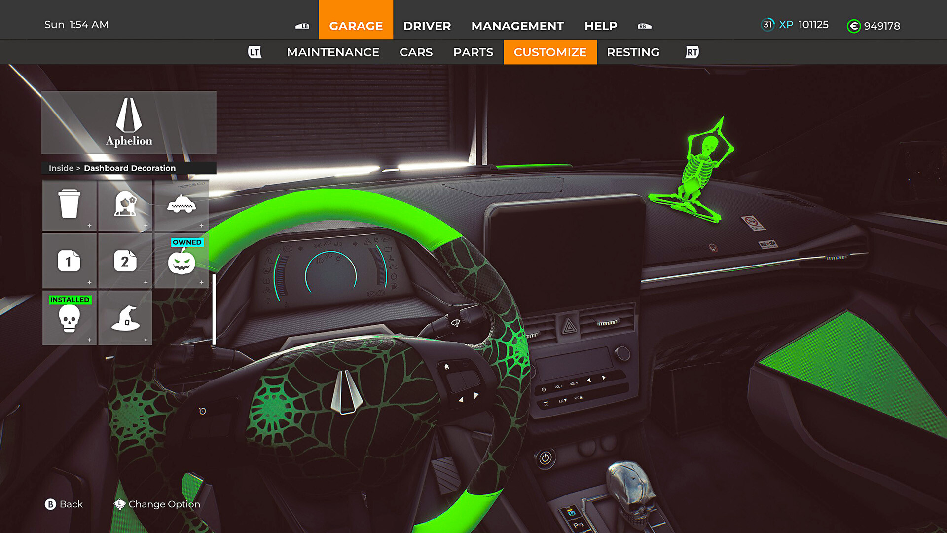 • 3 дополнительные дьявольские декорации для приборной панели: украсьте панель ведьмовской шляпой, тыквой или светящимся скелетом.