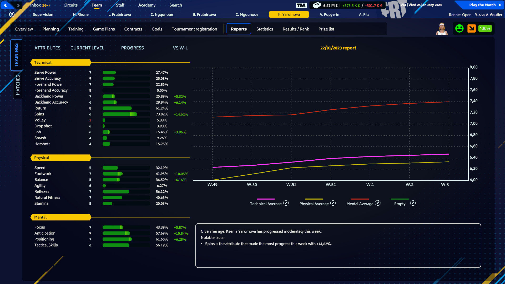 В Tennis Manager 2023 стратегическое управление - залог вашего успеха. Обеспечьте финансовую стабильность, заключайте контракты и делайте разумные инвестиции в структуру, чтобы достичь как краткосрочных, так и долгосрочных целей. Произведите впечатление на требовательный совет директоров, принимая проницательные решения, и станьте эталоном своего тренерского и управленческого стиля.