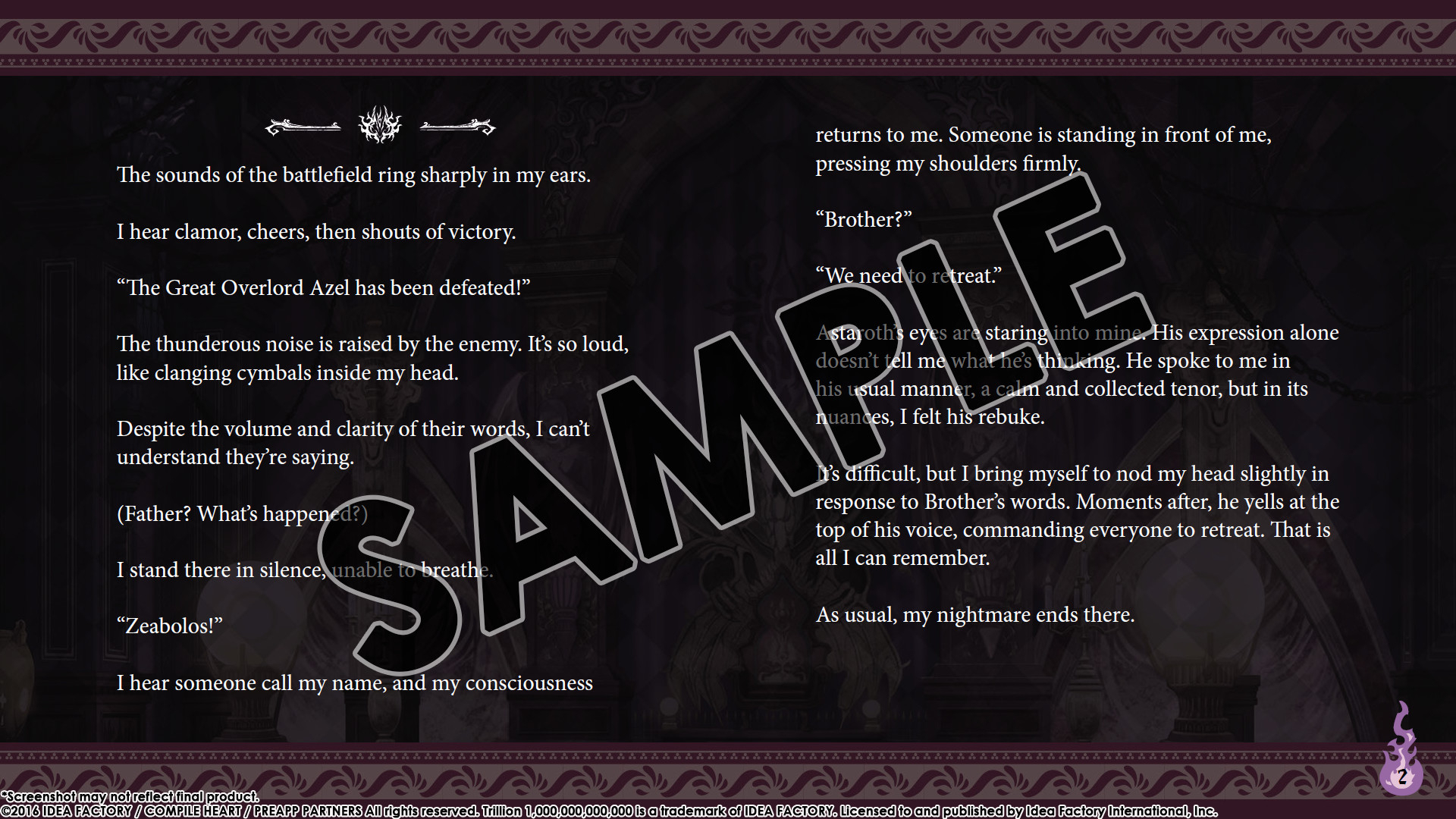 © 2016 IDEA FACTORY / COMPILE HEART / PREAPP PARTNERS All rights reserved. Trillion 1,000,000,000,000 is a trademark of IDEA FACTORY.