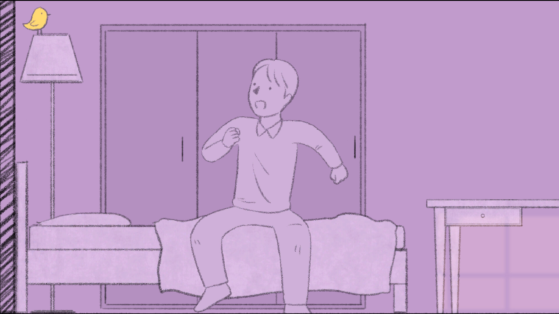 Но однажды он забывает закрыть окно и впускает в свою жизнь озорную маленькую желтую птичку, которая переворачивает его жизнь с ног на голову.