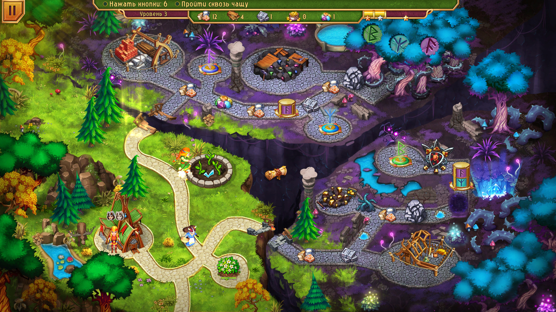В «Сестры викинги» есть традиционные для этой серии три режима прохождения, легкий, средний и сложный. При сложном на прохождение уровня дается очень мало времени и игрок должен планировать все свои действия. Легкий режим - без ограничения по времени, для тех, кто любит неторопливую игру. Ну а средний - со стандартным временем. При игре со временем будут нелишними бустер с дополнительным временем и способность Брунгильды при помощи меча останавливать время на уровне.